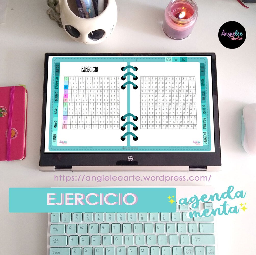 Simula una agenda física en color menta con separadores por mes y accesos rápidos. Son más de 70 páginas de contenido; con vínculos que te permiten, con solo tocarla, navegar por tu agenda de forma rápida y sencilla.
